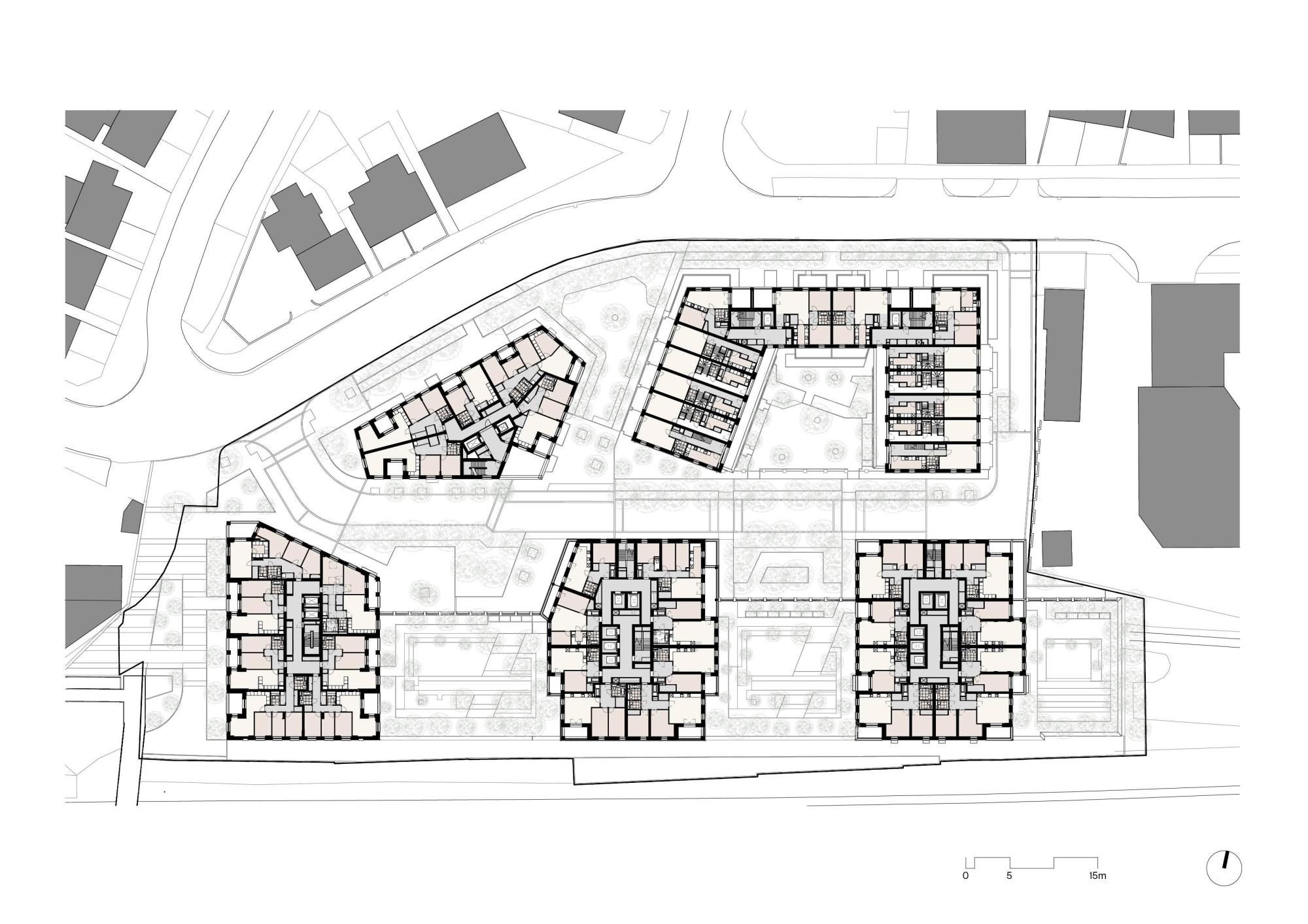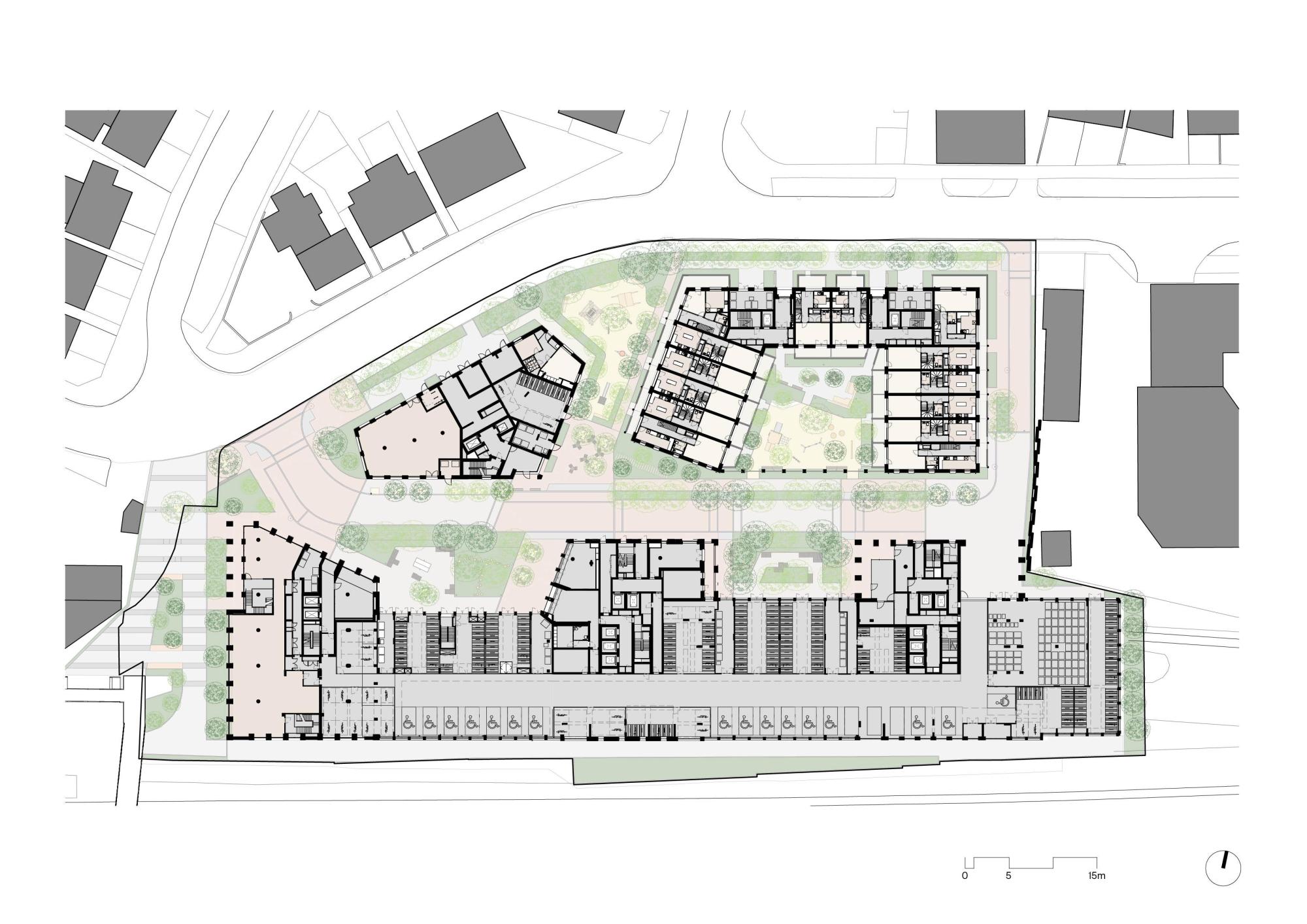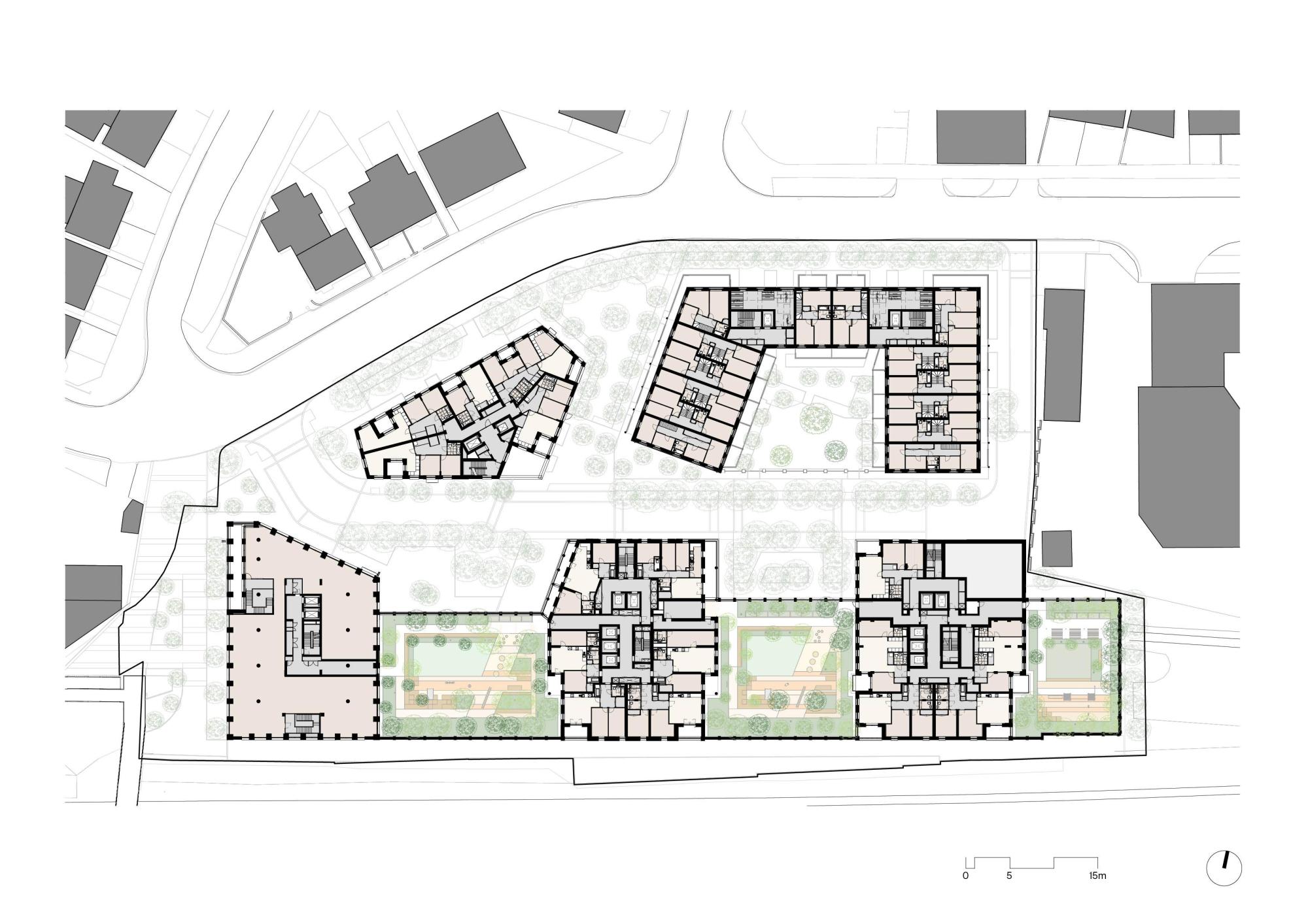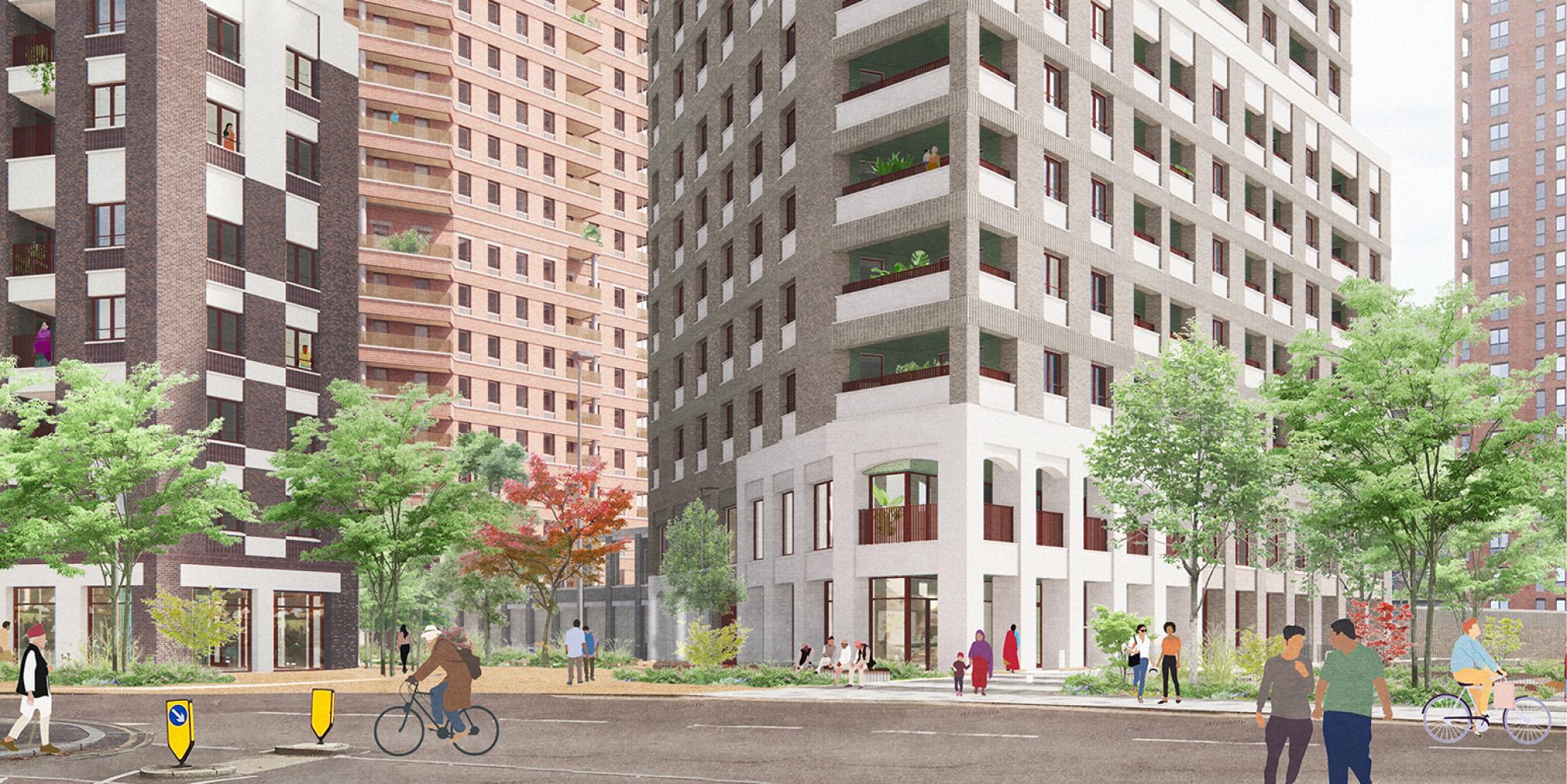 Housing-led masterplan with commercial space and permeable public courtyards