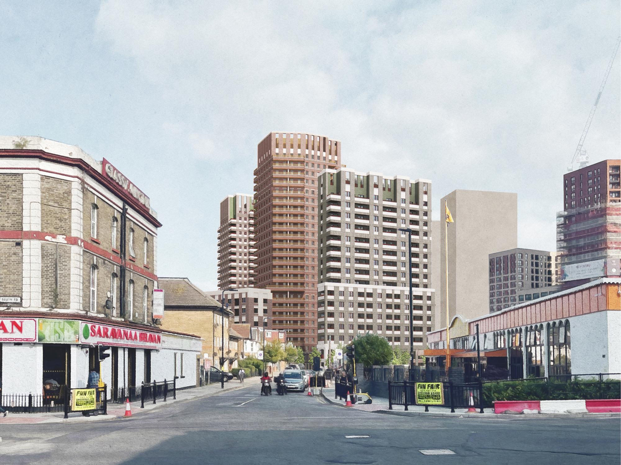 Southall is an area that reflects the multicultural makeup of London, undergoing dramatic change with the recent opening of the Elizabeth Line station. This makes its location strategically important, with close proximity to Heathrow and rapid access to central London. This, combined with the mainline from Paddington, bisects Southall, with new developments of height mostly to the south of the railway. Located north of the mainline, our scheme of similar height will visually unify both north and south, whilst a new pedestrian bridge brings a much-needed physical connection.